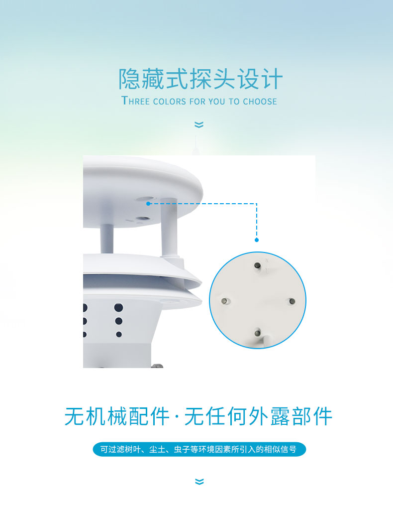 4.免維護(hù),雨滴接觸面為弧形設(shè)計(jì)結(jié)構(gòu),不存儲(chǔ)雨水